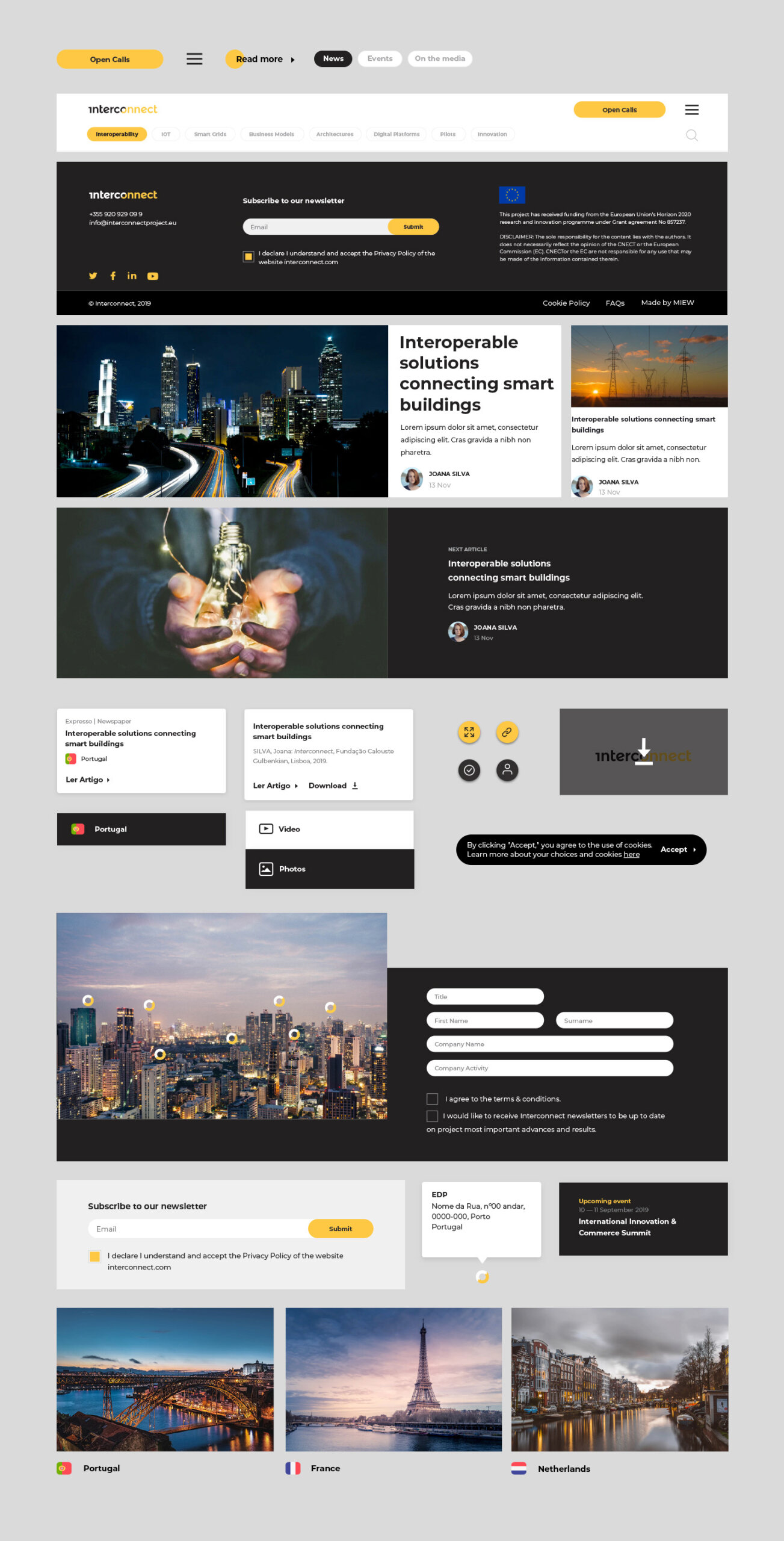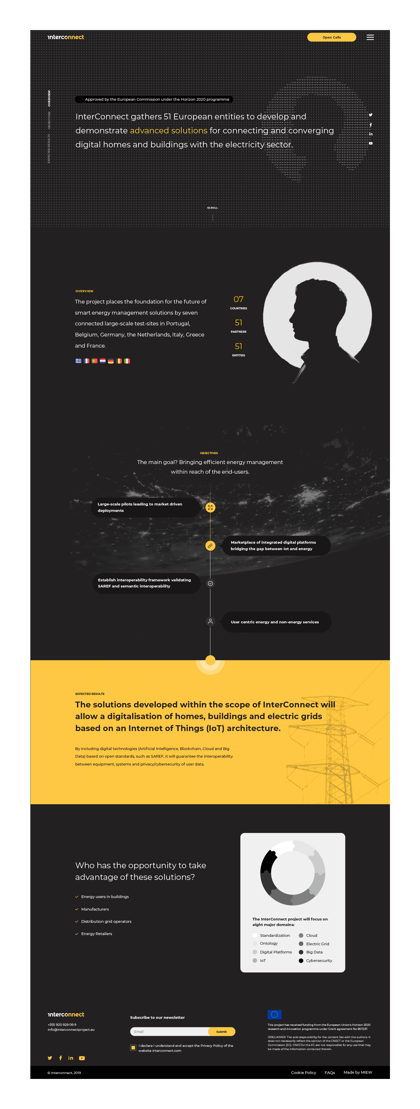 Interconnect is a project that gathers 50 European entities to develop and demonstrate advanced solutions for connecting and converging digital homes and buildings with the electricity sector. After having already worked with us, Interconnect tasked us with creating a website that could unobtrusively give the interface a sense of innovation.