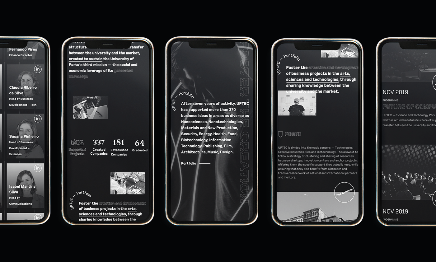 We were commissioned to develop a website as diverse and innovative as UPTEC, capable of reflecting its versatility and tech oriented concept. As members of the UPTEC community since our very beginning, we felt compelled to bring this project to light.