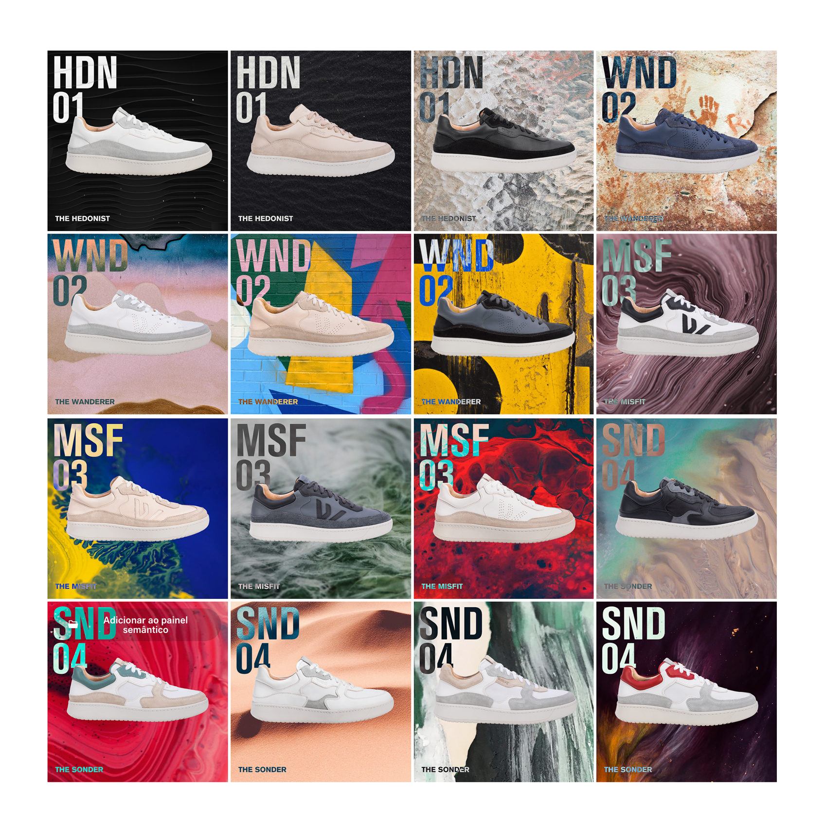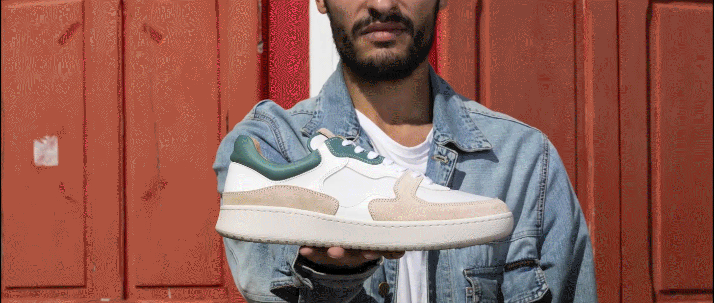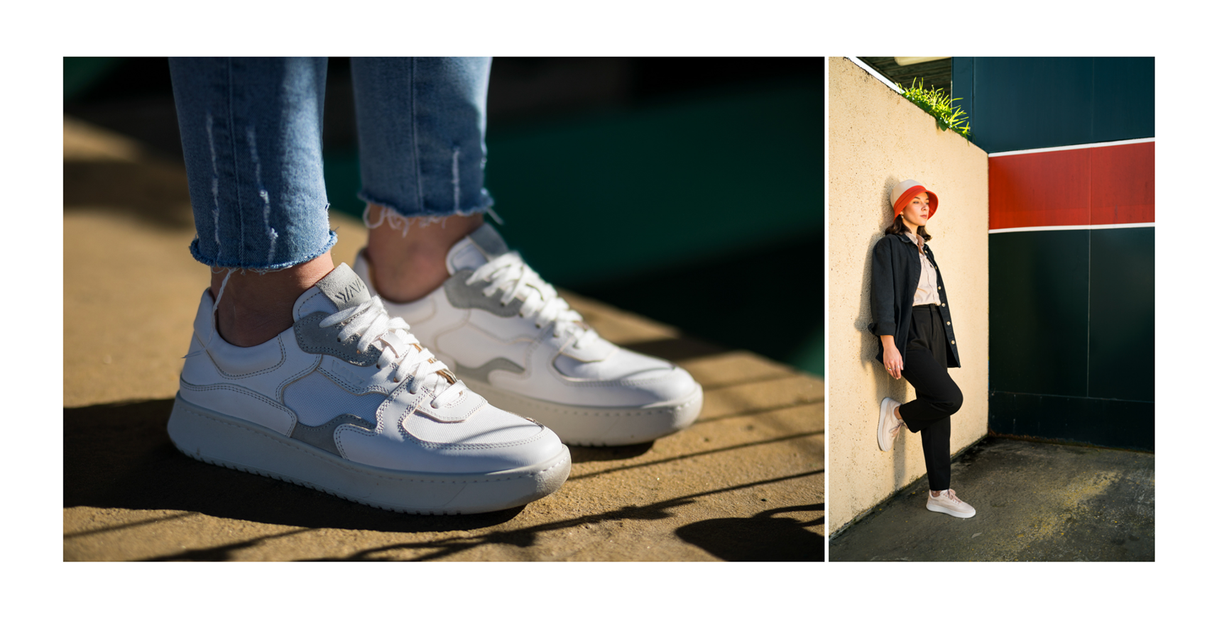 For the ecommerce product page, we did a studio photoshoot with the different sneaker collections. The key was to keep it simple and clean on plain backgrounds. Besides that, we made promotional photos with some models to show how the product looked in Porto's lifestyle street vibes.