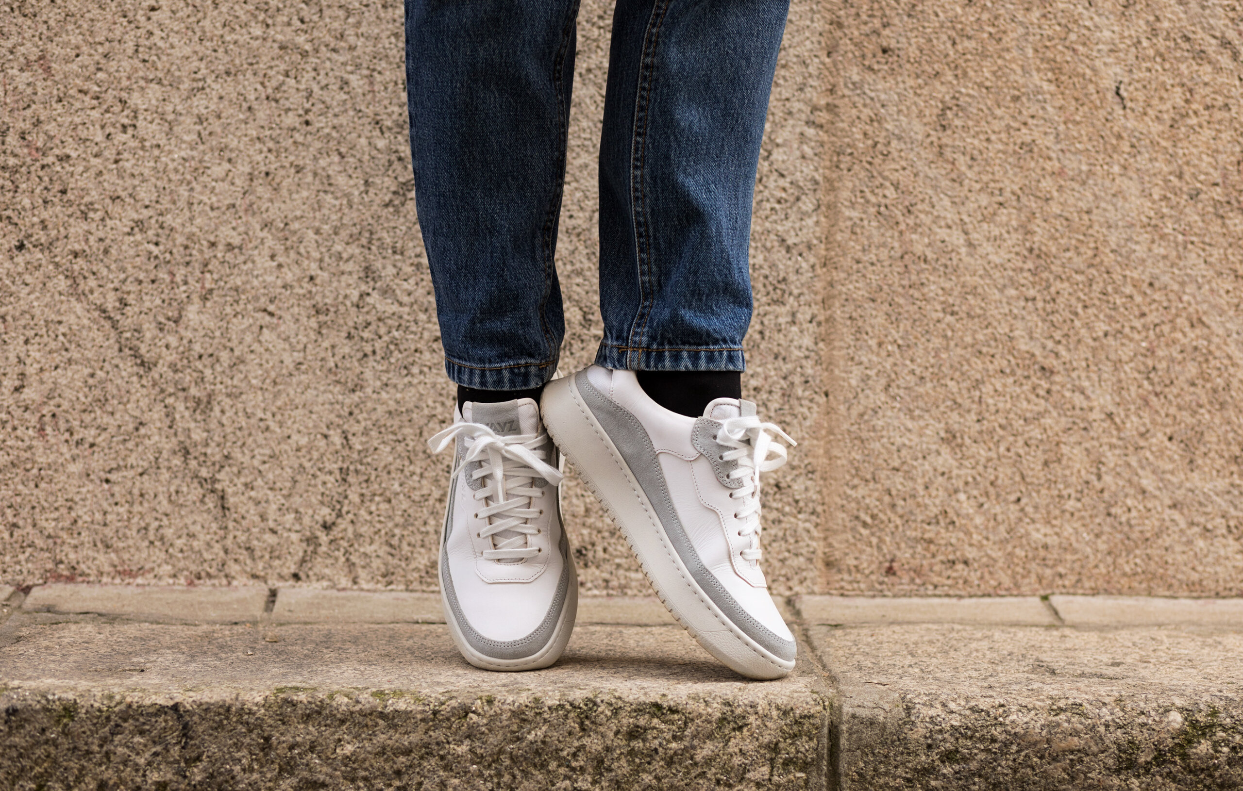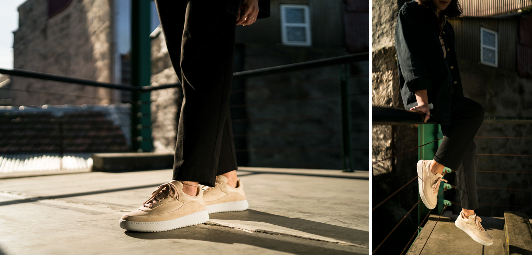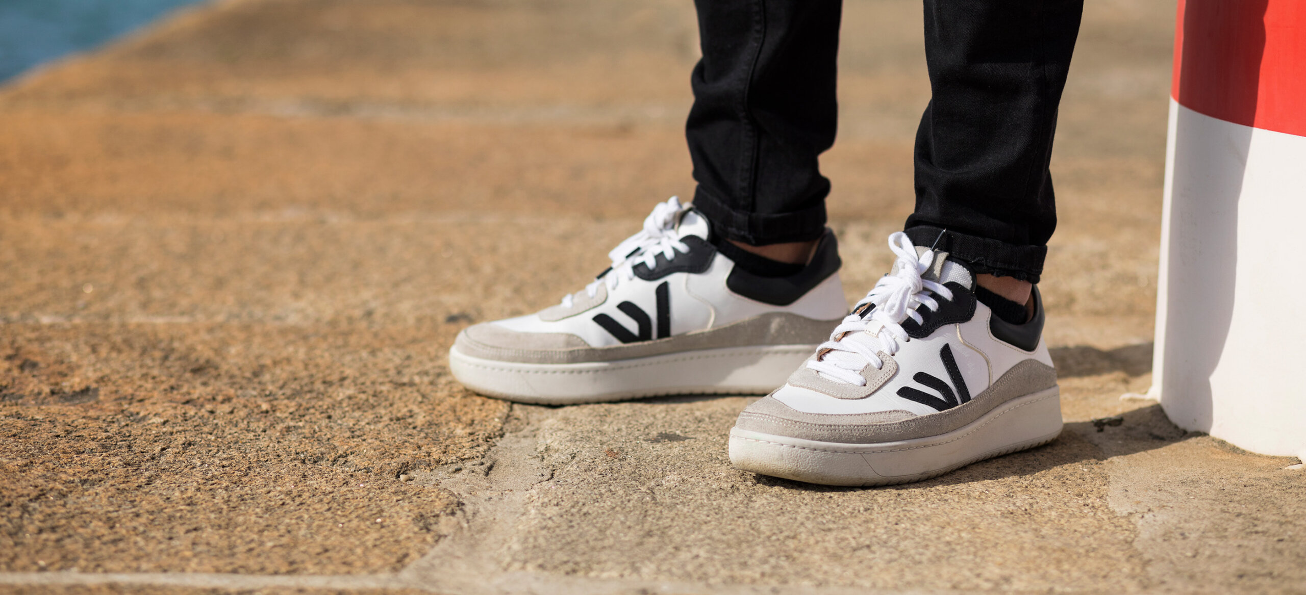 For the ecommerce product page, we did a studio photoshoot with the different sneaker collections. The key was to keep it simple and clean on plain backgrounds. Besides that, we made promotional photos with some models to show how the product looked in Porto's lifestyle street vibes.