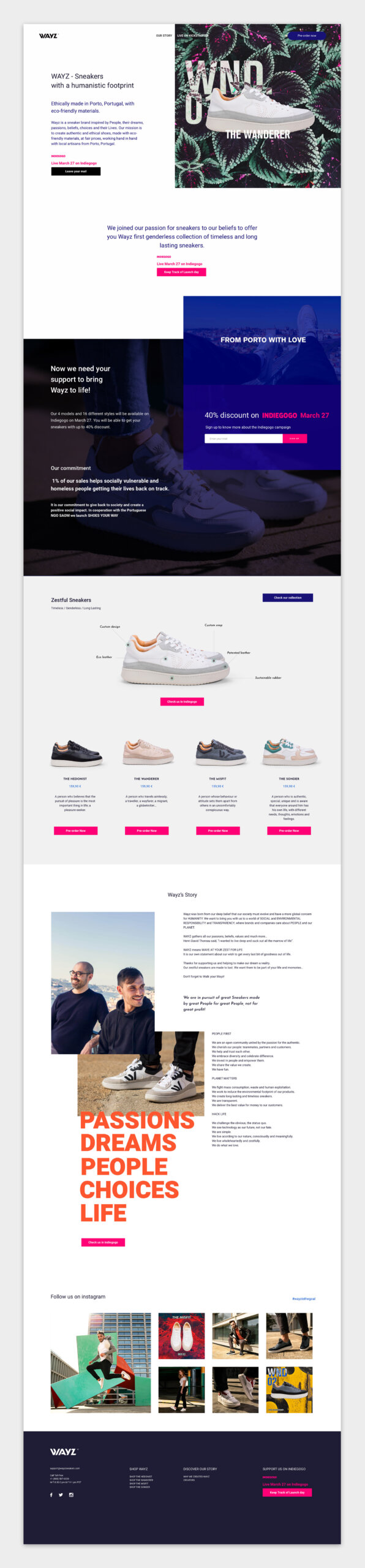 Born in Porto, Wayz is a sustainable sneaker brand with the mission to create ethical shoes, made with premium eco-friendly materials at fair prices. When Pedro Maçana and Daniel Gonçalves came with the challenge of taking their digital presence to the next level, we rolled up our sleeves and got to work.